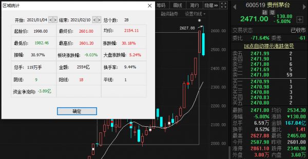 春节前,贵州茅台股价一路飙涨突破2600元,市值站上3万亿,中信证券更是喊出3000元的目标价。但当日,北向资金全天逆势净卖出17.8亿元,贵州茅台遭“聪明钱”净卖出达12.95亿元。有市场人士表示,2020年四季度北向资金已经表现出了“卖出消费,换入化工和银行”的防守型风格,在贵州茅台估值高涨的时刻,大幅减仓的避险操作完全可能发生。