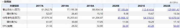 减持背后,除了贵州茅台一路上行的估值、市值,还有其放缓的增长率,2019年贵州茅台最终实现归母净利润增长率17.05%,较2018年的30%收窄近一半。而近半年机构一致预测数据显示,贵州茅台2020将实现归母净利润11.56%的增长,进一步收窄。