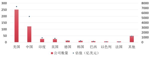 图 2 中美两国聚集了全球过半独角兽企业 来源:CB Insights