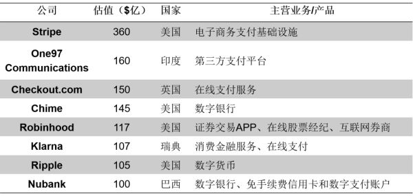 表 3 估值超过100亿美元的金融科技独角兽 来源:CB Insights