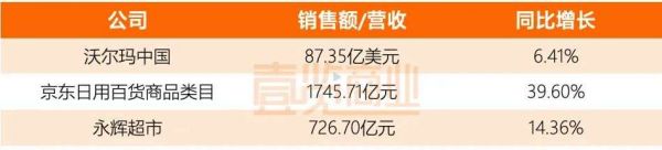 与中国本土两个主要竞争对手(线上的京东超市和线下的永辉超市)的对比中,永辉超市前三季度销售726亿元,同比增长14.36%,京东超市销售1745亿元同比增长39.6%,无论是销售额,还是增长率,沃尔玛中国均处于下风。