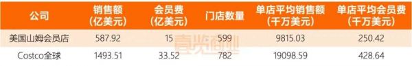 注:对比时间段:山姆会员店为2019年2月1日-2020年1月31日,Costco为2018年9月3日-2019年9月1日。