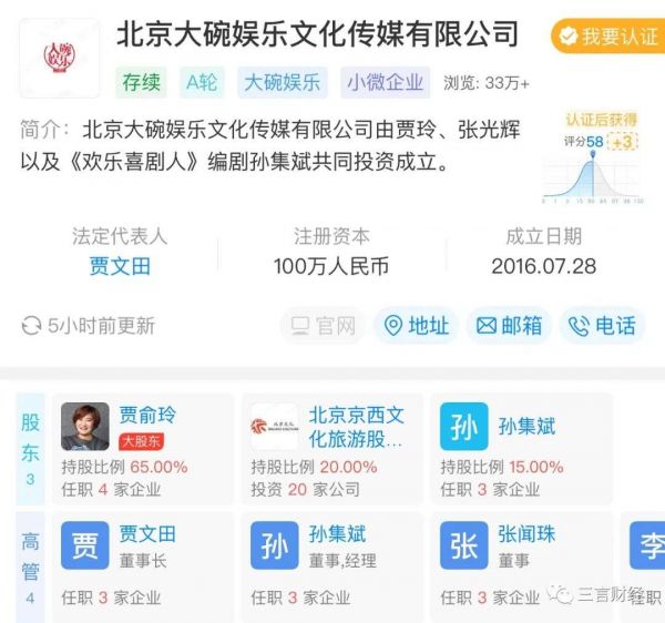 而贾玲的公司大碗娱乐则在这部电影出品方中排名第六,也就是说大碗娱乐收入范围低于北京文化,而要高于华谊兄弟。