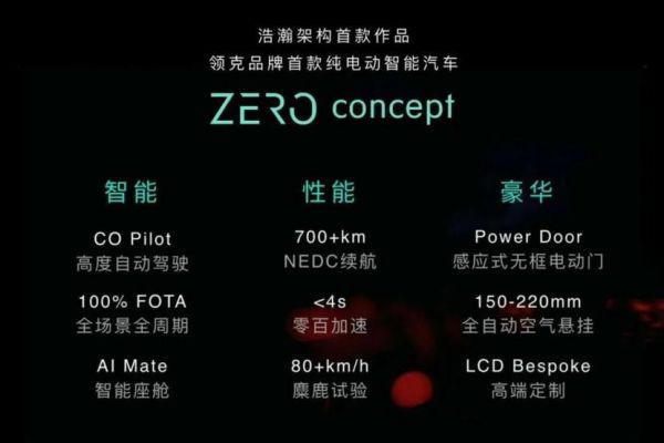 作为浩瀚架构的首款量产车型,吉利对领克zero可是寄予厚望。一来领克品牌本身具有良好的客户基础及销售渠道;另外从官方发布的参数来看,领克zero配置的续航、零百加速、热管理系统、自动驾驶等方面属于行业主流以上水平,有可以跟Model 3、比亚迪汉、小鹏P7等车型正面刚的潜力。