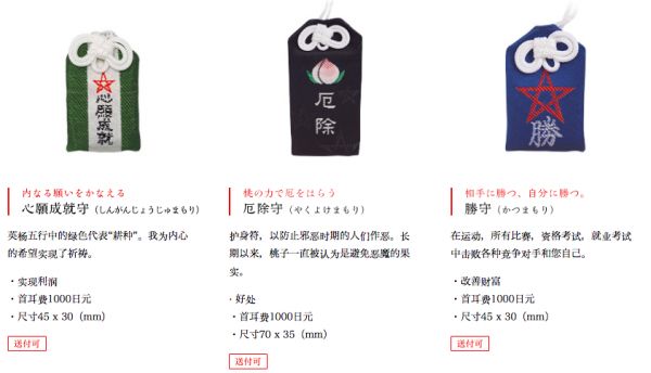 并且这些“吉祥小物件”都有着细致的功能分类。在日本,御守的种类五花八门,除了学业类、健康类等,“河合神社”还有针对身形、笑容、美白的御守,适合想要变美的人群,京都岚山的御发神社推出了生发御守,是一种为保护头发健康而做的御守,价格在700-1800日元,折合人民币43-110元,非常适合脱发的社畜。