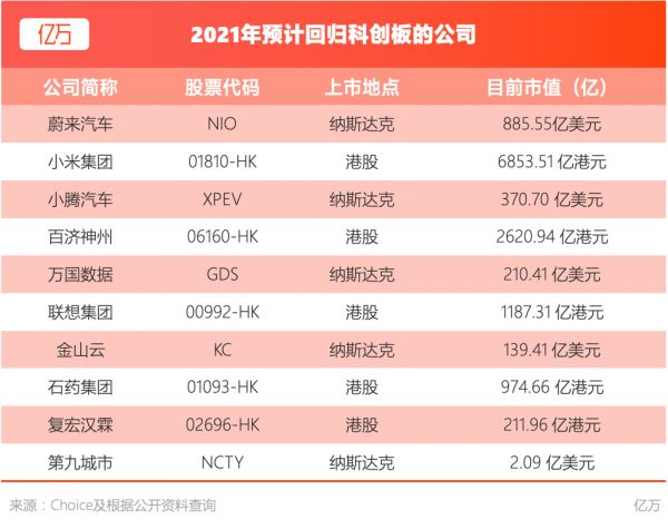 综合上市条件、企业发展需要、市值情况,亿万认为万国数据,蔚来汽车,小腾汽车、金山云、小米集团、第九城市、联想集团、百济神州、石药集团、复宏汉霖等10家企业,将宣布主体或分拆子公司回归科创板。