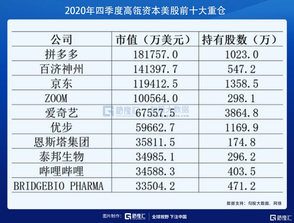 另一方面,其对中概股的布局更具选择性,其中拼多多、京东、爱奇艺、哔哩哔哩获增持。拼多多获得了增持2.3万股,持股数量升至1023万股,持股市值达到18.18亿美元(约合人民币117亿元),成为高瓴第一大重仓股(仓位占比14.45%)。