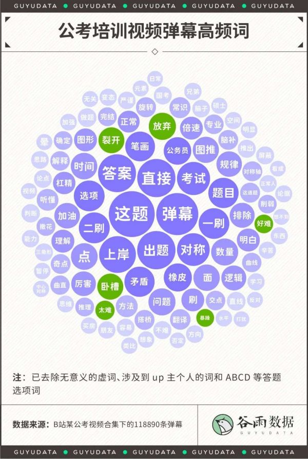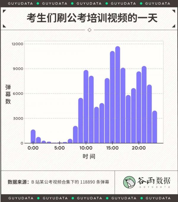 在B站最火的公考培训视频合集中,我们分析并爬取了其中19个视频下将近12万条弹幕,试图从这里还原考公人的备考状态。