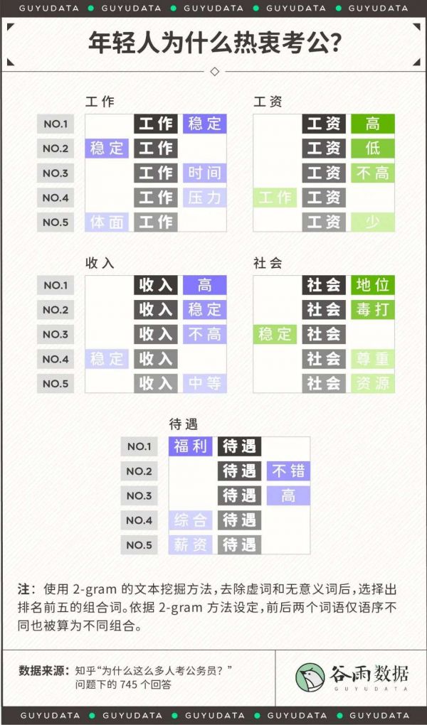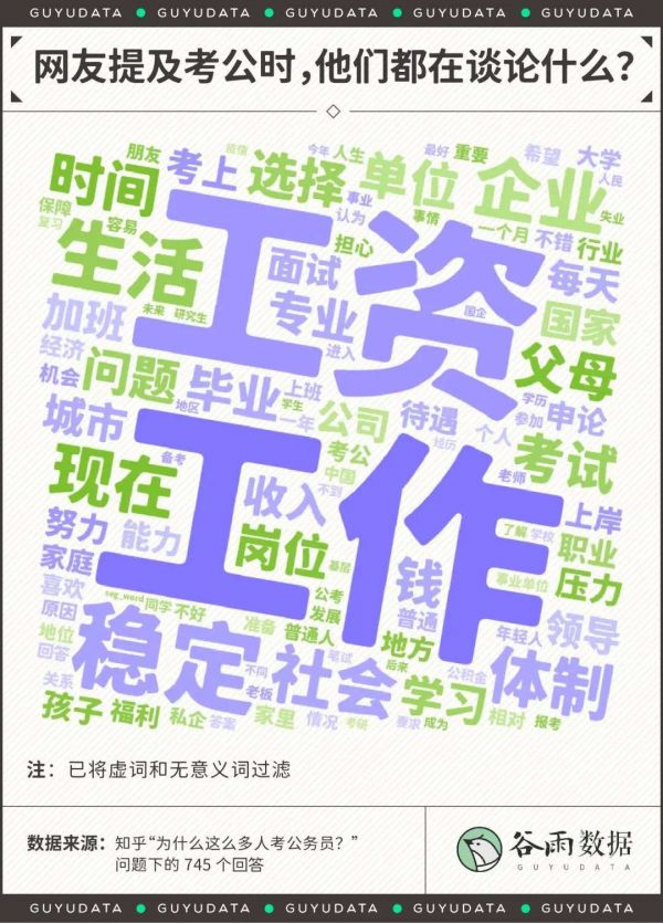 但是对于工作、社会(地位)和待遇,网友们的态度则十分一致,我们也可以据此勾勒出一幅大家心目中的公务员画像:工作稳定、福利和综合待遇好、社会地位高、有足够的社会资源。