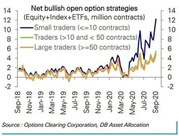 另一个需要关注的事情是,从去年年中开始,零售投资人在股票和期权的交易量上在明显加大,并且在去年年底和今年年初开始爆发。