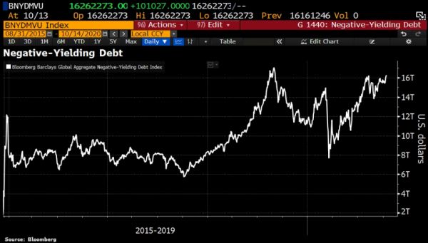 首先,从债券市场来看,截至2020年底,仍然有16万亿的钱分布在负收益资产上。