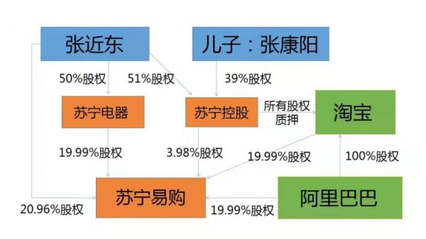 2020年12月,张近东、张康阳及南京润贤企业管理中心(有限合伙)将所持有的苏宁控股全部股权出质给淘宝(中国)软件,合计出质股权数额10亿元,张近东还将其持有苏宁置业65%的股权质押给了淘宝。
