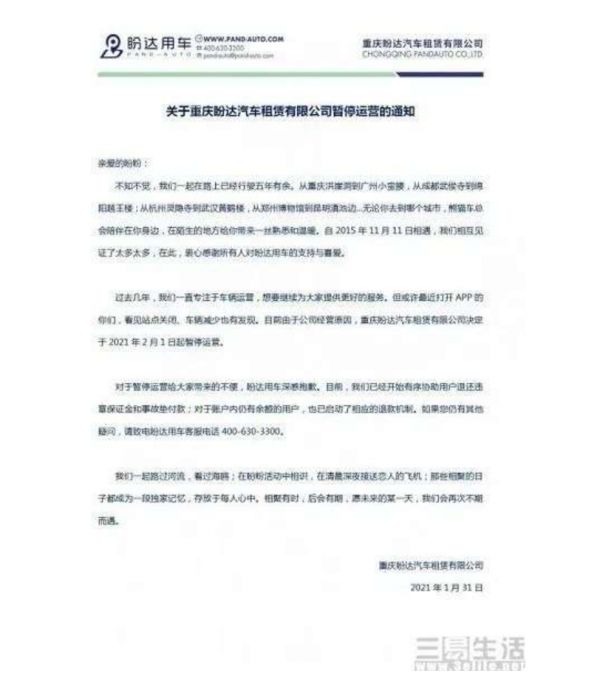 2017 年以来,包括 EZZY、友友用车、途歌 TOGO 等在内的多家共享汽车企业倒闭,包括绿狗租车、滴滴旗下小桔租车等企业暂停分时租赁服务。本月初,盼达用车发布公告,称由于公司经营原因,公司决定于 2021 年 2 月 1 日起暂停运营。
