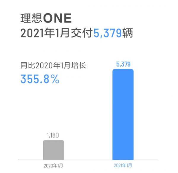 在规模上,理想今年1月的交付量,被蔚来进一步拉开了差距。理想在1月交付了5379辆,蔚来为7225辆,相差1846辆。在2020年12月,二者之间的差距还只有881辆。小鹏1月的销量为6015辆,也超过了理想。