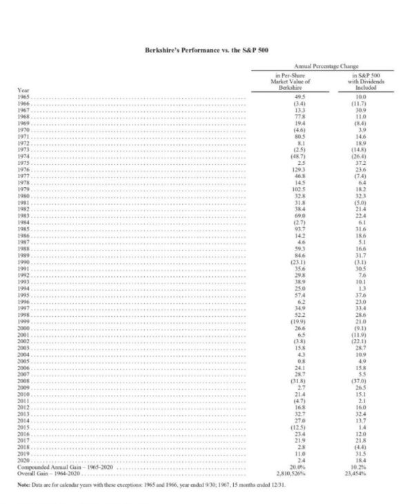 但长期来看,1965-2020年,伯克希尔每股市值的复合年增长率为20%,明显超过标普500指数的10.2%,而1964-2020年伯克希尔的市值增长率是令人吃惊的2810526%,也就是28105倍多,而标普500指数为23454%,即234倍多。