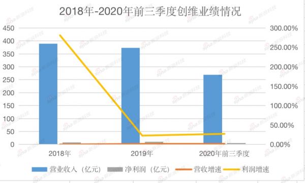 创维集团近日披露业绩快报,2018年(按财政结算日期调整前计算)至2020年三季度,创维集团的营业额分别为389.78亿元、372.77亿元、269.54亿元。增速分别为0.1%、1.6%、2.2%。其中净利润分别8.39亿元、10.31亿元、5.45亿元,同比增速为281.4%、22.9%、27.45%。