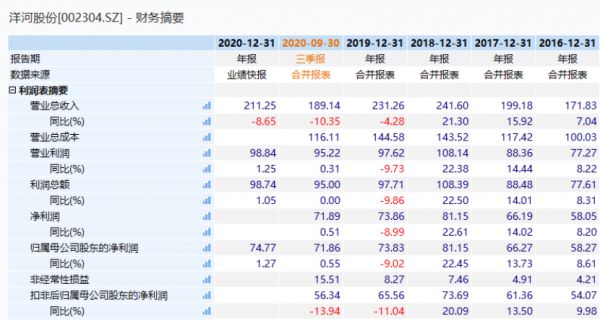 (洋河核心财务数据,来源:Wind)