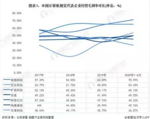 此外,商汤科技的毛利率43%在同行之中也不算高。根据前瞻产业研究院统计,2019年“四小龙”中只有云从科技的毛利率低于商汤科技,其他两家的毛利率都在60%以上。43%的毛利率同样低于阿里、海康威视等大厂。