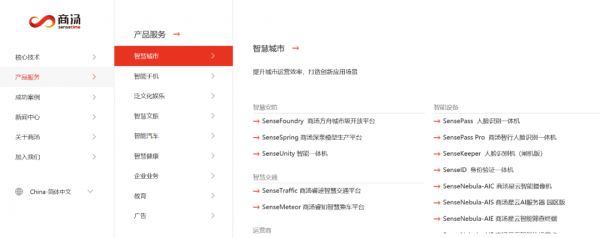 但这个领域的发展究竟是怎样的?以商汤科技为例,其产品服务项下有9个大类,据BT财经了解,目前CV的最佳应用领域是智慧城市下的智慧安防。