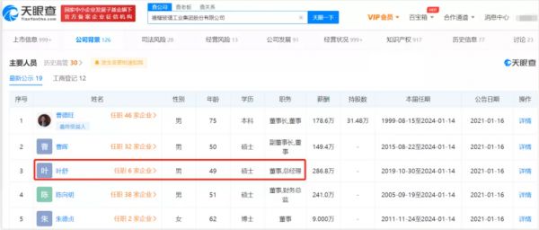 曹德旺有2位儿子,曹晖和曹代腾,此外还有1个女儿,女婿叫叶舒。据公开履历显示,叶舒在福耀玻璃中曾担任过多个职位,2003年至2008年叶舒在配套、筹建等部门工作,后来陆续担任采购部副总经理、供应管理部总监等。2017年,叶舒便成为了福耀玻璃的总经理。除了福耀玻璃外,叶舒还在曹德旺旗下的多家公司均担任高管。媒体一度有他将接班的消息。