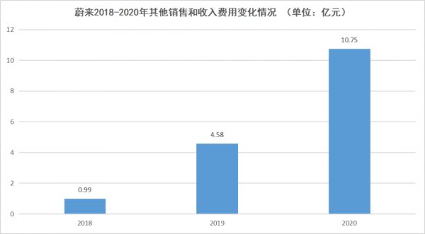 蔚来2018-2020年其他销售和收入费用变化情况,数据来源于Wind,连线出行制图