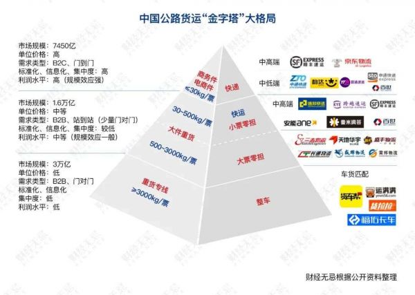 公路货运按货物的重量分为快递、零担和整车。零担和整车由于主要都是服务企业,普通人接触不多。但事实上,公路货运这是一个巨大的市场。国泰君安的报告称,目前中国快递行业市场规模有8000亿,而零担市场规模达到了1.5万亿。