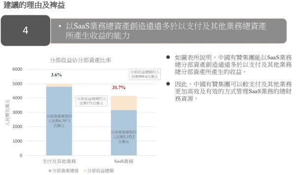 所以,中国有赞相当于一个控股集团,是有赞科技的控股股东。但中国有赞的业绩只有一部分来源于有赞科技,还包括CIG的支付相关业务,并且由于只持有有赞科技51%的股权,中国有赞不能享受有赞科技全部的业绩红利。