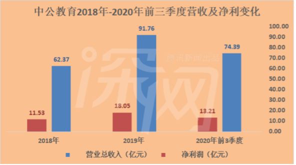 需要指出的是,中公教育的“借壳上市”附有对赌协议,按照规定,中公教育在要2018年至2020年这三年分别实现9.3亿元、13亿元、16.5亿元的净利润。