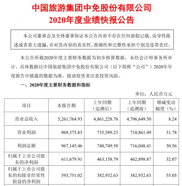 如此巨大的成长空间也带动了国内免税企业的快速恢复与成长。以已经跃居全球第一的中国中免集团来看,根据其最新发布的业绩快报,报告期内,公司实现营业总收入526.18亿元,较上年同期增长8.24%,实现营业利润96.94亿元,较上年同期增长31.78%,实现归属于上市公司股东的净利润61.17亿元,较上年同期增长32.07%。而这最主要受益于疫情期间出境消费需求回流以及国内海南离岛免税新政发布实施。