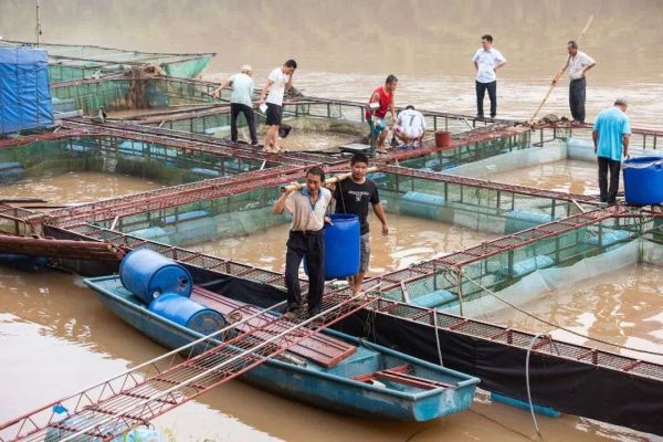 刘汉元在做一种网箱养鱼的试验,为此付出的代价是,全家人手工制作鱼饲料,轮番熬夜投喂。