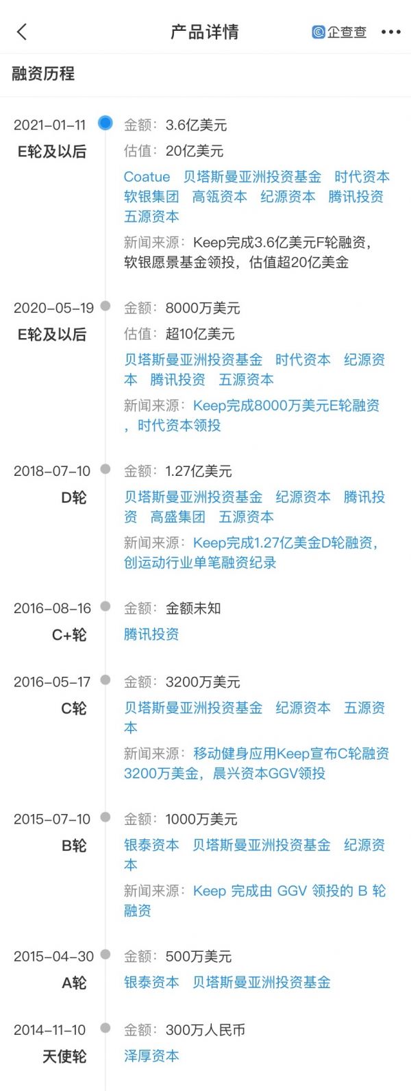 △Keep融资情况一览