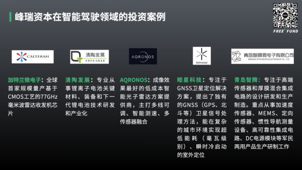 近几年,自动驾驶始终是一个热门话题。百度、华为主打L4技术,小鹏、蔚来等造车新势力比拼自主泊车与ADAS(高级辅助驾驶系统)的推送更新,苹果虽未官宣,但也在研发无人驾驶技术。就此方向,峰瑞资本进行了大量的研究和讨论,并在投资实践中布局了10余个激光雷达、毫米波雷达及上下游项目。