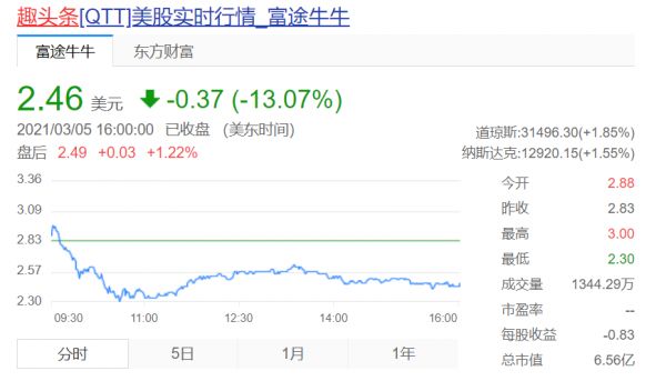 疫情的冲击下,2020年线上经济开始爆发,虽然全年营收52.85亿人民币,但趣头条第四季度的数据却出现了下滑,营业收入13.02亿元,较去年同期16.58亿下滑21.5%。想象力见顶,营收数据下滑,财报公布后,资本市场快速做出反应,美股周四收盘,趣头条股价跌超25%。