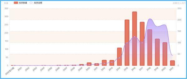 IT桔子统计显示,2014年起中国SaaS行业投融资数量明显提升,达到108起,同比暴增237.5%;到2016年时达到巅峰,共计329起,之后逐渐开始减少。