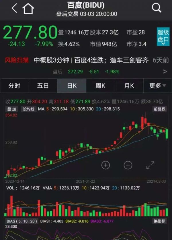 百度也的确达到了这一目的,股价不止从12月中旬以来保持上涨趋势,还在因美债收益率走高、美股市场高估值公司(如特斯拉)暴跌之时保持了相对稳定,今年年内依然有超过28%的涨幅。