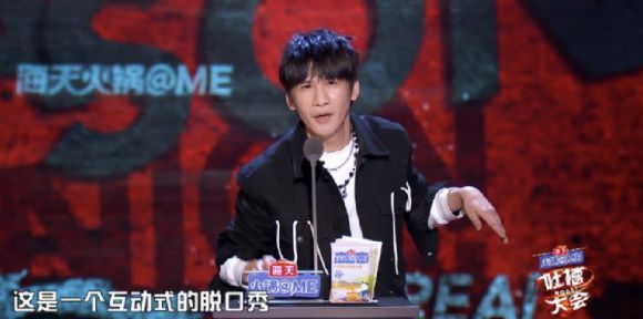 除了音乐,嘉宾们还在脱口秀中融入了多种表演形式,比如辣目洋子在本场演出中拿起了红酒杯,李诞称之为“魔术式脱口秀”,汪东城则在《吐槽大会》舞台上重现了被吐槽的“油腻”舞蹈。