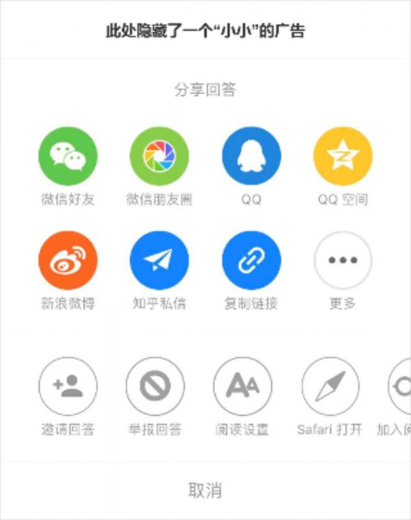 知乎,这个知识问答社区的商业化除了知识付费,还有花式推送的广告,尤其是这个“更多”弹窗中的广告: