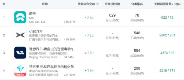 左起:特斯拉、蔚来、小鹏、理想APP