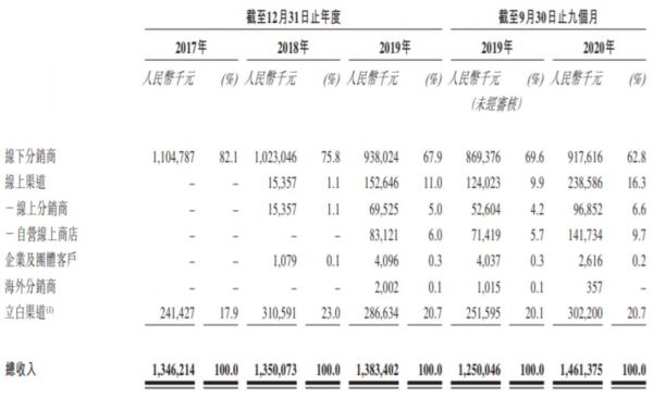招股书显示,2017年、2018年、2019年和截至2020年 3月31日止三个月,与立白的销售额分別占到公司营业收入的17.9%、23.0%、 20.7%及20.7%。且朝云集团通过立白集团向48家大客户(包括沃尔玛、家乐福等全国性、区域性大卖场、超市、百货商店及便利店)销售,目前覆盖了约11000个销售点。