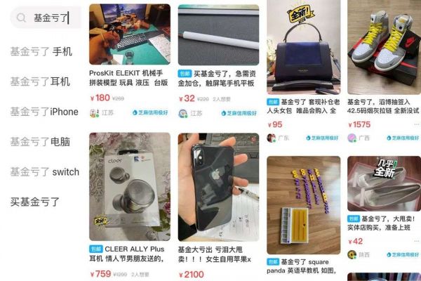 在闲鱼搜索“基金亏了”关键词,出现的转卖信息多到划不到尽头,下至一块钱的卷刘海神器,上至99成新的iPhone12,全都指向共同的转卖理由,好似一种接班“老板带着小姨子跑了”的新型销售话术。