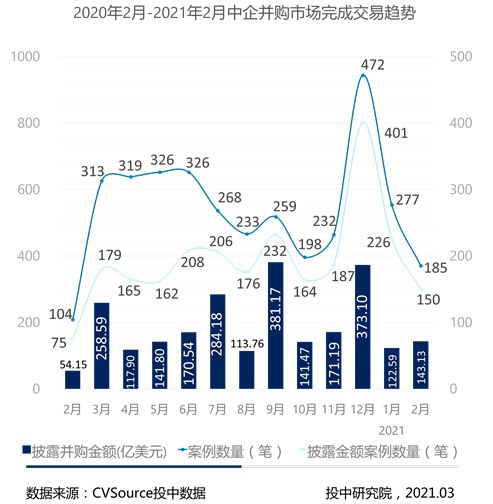 图2- 2020年2月-2021年2月中企并购市场完成交易趋势