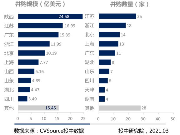 陕西省交易规模位居榜首,主要缘于头部大额案例
