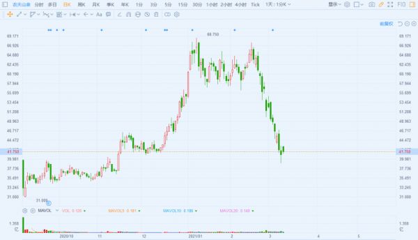 到了今年,农夫山泉股价从68.75港元的高点撤退,截止目前已累计下跌逾35%;万泰生物也在昨天亏掉了今年来的所有涨幅,较高位已下跌约37%。