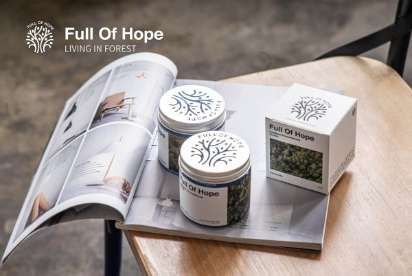 团队在研发除甲醛产品时,发现市面上常见的除醛方式往往有三种:1)光触媒技术,但需要紫外线的持续照射,家庭不一定具备这样的条件;2)炭包,能吸附甲醛但是吸附力有限,且饱和之后即释放,容易造成二次污染;3)绿萝,100平方米的建筑需要1800棵绿萝才能有效除醛,效果微弱。研发团队采用国际上第4代绿色除醛技术——气触媒抓取技术,捕捉空气中的甲醛和大分子污染物,分解转化为水和二氧化碳。经过广微测、清华大学、国家纳米实验室机构认证,Full of Hope产品的除醛率达95.7%。