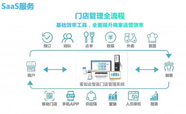 从技术上而言,SaaS已经能从餐饮最初的采购,贯穿到顾客买单,顾客维护、人力管理以及供应链、数据中台等各个环节。