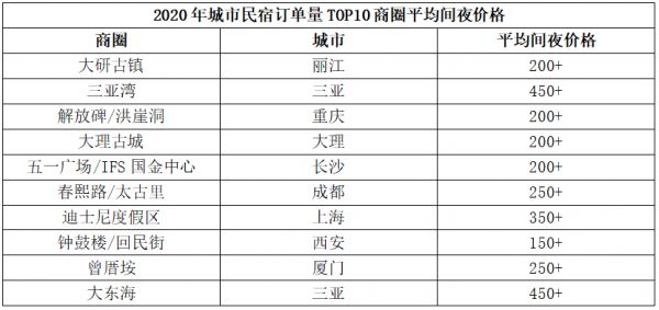 商圈能够给城市民宿带来的订单量越多,价值度就越高。途家民宿数据统计显示,2020年国内城市民宿订单量排名最高的十大城市商圈: