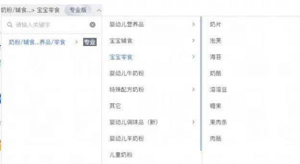 (天猫生意参谋 宝宝零食类目 大单品分类)
