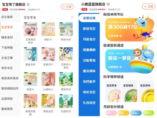 儿童零辅食头部品牌宝宝馋了就处在这种交锋中。据小鹿蓝蓝官方称,品牌上线218天全渠道GMV破亿,线上数据增长迅猛。而天猫生意参谋数据显示,宝宝零食类目下,去年5月发布的小鹿蓝蓝天猫旗舰店交易指数自9月起超过宝宝馋了,连续获得天猫宝宝零食类目TOP1。零食以外,小鹿蓝蓝也已进入宝宝辅食类目。
