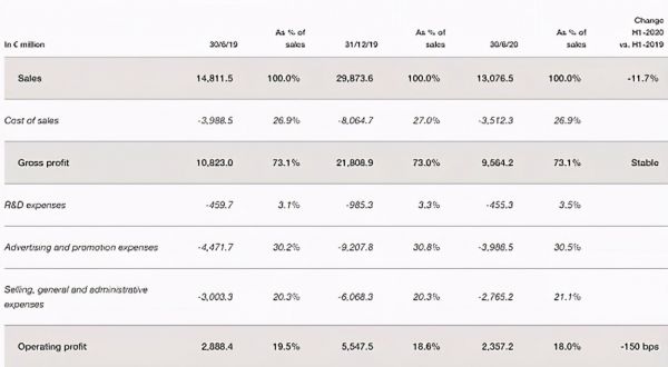 根据财报的截图数据,欧莱雅2020年上半年的研发费用同比扩大了7.1%,达到了37.83亿元,占整体销售额的3.5%。而逸仙电商2020年上半年的研发费用仅占营收的1.32%,在Q4的研发费用占营收也仅占1.23%,这还是在研发费用有所提高的情况下。