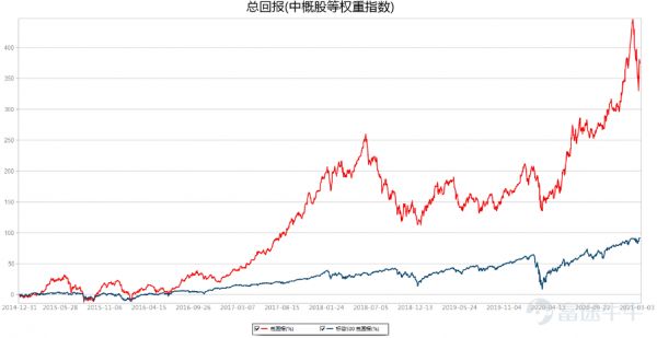 2015年1月1日以来中概股等权重指数上涨381.12%,跑赢标普500指数,相对回报率为289.60%,本周指数上涨了6.16%。